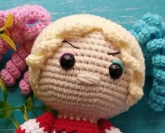 Insert the safety eyes between rounds 7 and 8, 4 stitches apart. Attach the safety eyes by closing the washers.
