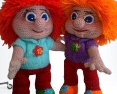Yarn: 4 colors of aran / 10 ply weight merino wool (BBB Filati Full: 50 g / 90 m; 100% pure new wool) – blue, yellow, dark pink, light pink